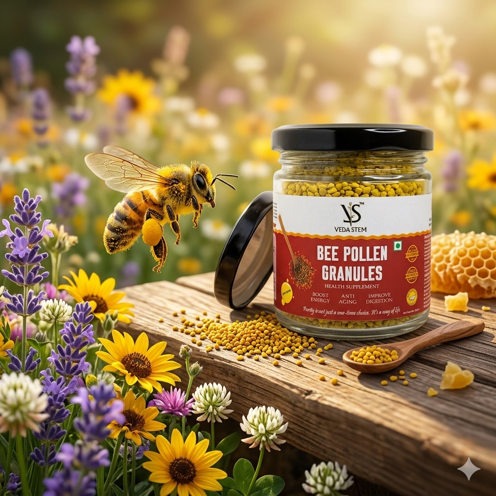 Veda Stem Bee Pollen Granules are nature’s powerhouse of nutrition, carefully harvested to deliver pure, unadulterated bee pollen rich in vitamins, minerals, amino acids, and antioxidants.